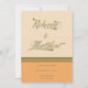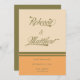 Make your own retro wedding invitations with this wedding save the date template in shades of green, cream and orange. The front is showing your names of choice in a vintage inspired retro font. All colours can be changed in the design tool to fit your wedding theme. The perfect choice for a vintage wedding, desert wedding or fall wedding.