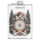 The flask itself is fine. It’s a cheap flask, obviously bought in bulk, however am prepared to overlook that. Given that it is a personalized item, I would have liked to have seen gift boxing instead of the generic packaging. Terrible printing, and/or quality. It’s a cheap, tacky vinyl. It is not cut straight and is also applied in a way that it is overhanging the bottom, causing the glue to catch on items and it will eventually roll and tear, damaging the wrap.