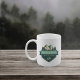 Perfect for National Park, state park, or campground visitors, this cool vintage style customisable design features an outdoor inspired wilderness scene with mountain peaks and birds. Two lines of custom text in retro lettering allow you to personalise this mug with the name of your destination and the park type or location. Gift this awesome rustic themed souvenir design to anyone who loves visiting national parks or being outdoors. Makes a great group gift or souvenir to commemorate a hiking or backpacking adventure, fishing or camping trip!