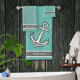 Marine Nautical Anchor Bathroom Aqua Teal Grey and White Bathroom towel set. design by Sandy Closs