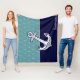 Marine Nautical Anchor  Teal Turquoise  Blue Fleece Blanket design by Sandy Closs