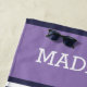 Enjoy total comfort at the beach or sitting poolside, and cool and dry off with this fun, colourful and comfy beach towel. Stand out in the sand with this beautiful contemporary ship anchor, on a classic and chic dark navy blue and white stripes pattern. With room to personalise or customise with name, initials or monogram of your choice or any kind of nautical expression like "Ship Ahoy", "Sail Away", "Anchors Aweigh", or "Bon Voyage", on a violet lavender purple coloured background. Created for the captain, lover of boating, sailing, vacation and bright sunny summer days on the water or beach.