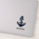 The nautical anchor sticker design not only adds a timeless aesthetic but also complements any boating enthusiast's collection. Featuring your boat's name, and a navy blue anchor and rope, personalise to create a unique gear for your boat. Makes a great giveaway for everyone.