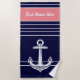 Custom Nautical Anchor Ocean Navy Blue Coral Beach Towel