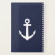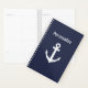 Custom nautical boat anchor spiral planner. Personalised weekly / monthly agenda book. Make your own cover design with ship anchor image. Fun Birthday gift idea for friends, family, sailor, boat captain, sailing enthusiast, teen, teenager, boy, girl, kids, coach, son, daughter, mum, dad, coworker, boss, colleague, school teacher, trainer, fan, wedding planner, company manager etc. Office presents for him or her. Maritime theme design. Upload your own image optionally. Navy blue and white or custom colour background. Great for planning, teams and club events.