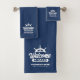 Custom Navy Blue Boat Name Welcome Aboard Bath Towel Set