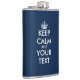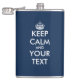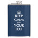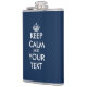 Custom navy blue keep calm big drink flask. Personalised hip flask with funny quote. Nautical colours. Fun Christmas or Birthday gift idea for sailor, captain, groom, dad, husband etc. Customisable into any colour. Large and small sizes.
