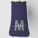 Custom Create Your Own Personalized Initial Name Monogram Golf Head Cover. Designed with a navy blue background, soft gray lettering for the initial, and a flowing white script for the name, this head cover brings a refined and personalized look to the course.