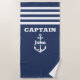 Make a splash with this Custom Navy Captain Beach Towel. Perfect for boat owners and beach lovers, this stylish towel features the bold header 'CAPTAIN' with a personalised name beneath it. Made from high-quality, absorbent materials, this towel is both soft and durable, making it the perfect accessory for any seaside adventure. Customise it with your name for a unique and personal touch. Ideal for gifts or personal use, this beach towel is a must-have for any captain.