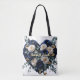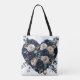 Custom Navy Gold Floral Monogram Heart Tote Bag