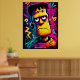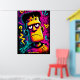 Custom Neon Frankenstein Retro Halloween Design Poster