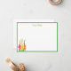 Custom Note Card shown in white with a lovely gladiolus print with a green border trim.