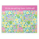 A very pretty, customisable Notepad or Jotter, with a pattern of pink, yellow and blue primroses, from a handpainted watercolour design by Judy Adamson. The notepad shown has a plain band in Pretty Pink to customise but other colours are available in my store.