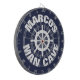 Custom novelty design nautical man cave dartboard. Funny maritime theme dart board design with personalised name and old ship wheel logo. Cool wall decor game for real men's man cave, cabin, fish restaurant, bar, pub, dorm room, bedroom, kitchen, diner, cafe, office, shop, store, boat, ship, deck, graden, wedding party, business, company etc. Personalizable with family name or humourous quote. Awesome Birthday gift idea for friends, family, sailor, boat captain, skipper, fisher, kids, dad, uncle, grandpa, brother, husband etc. Target with bullseye. Navy blue and white colours.