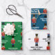 Custom Nutcracker cartoon Christmas wrapping paper sheets. Cute Holiday gift wrap roll design for friends and family. Customisable background colours and text. Available in matte and glossy finish. Funny toy soldier pattern design. Personalise with your own custom Holiday greeting and name.