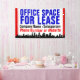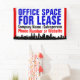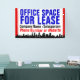 City skyline with bold text. Leasing a commercial office building or small business space can be made easier with this red "office space for lease" sign. It' easy to customise this indoor or outdoor banner sign online and order with no minimum quantity. Type your title /details/company or phone number for a professional display of your property information. Much better than sticking letters on a store-bought sign.