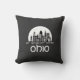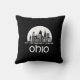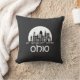 A minimalist and stylish black and white illustration of a city skyline, featuring several tall skyscrapers and a silhouette of a park below. The word "OHIO" is prominently displayed at the bottom, adding a touch of state pride. The overall composition is clean and modern, with a circular frame surrounding the skyline.