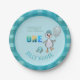 Complete your party table with this charming Boy Silly Goose Paper Plate! Featuring our adorable boy goose character wearing a cool baseball cap and holding a balloon, this plate is a perfect fit for a whimsical first birthday celebration. The design is set against a soft blue background with a playful blue plaid border, matching the rest of the collection.