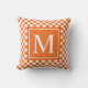 Custom Orange Chequerboard Monogram Throw Pillow, easy to personalise with your name initial. Available in many stylish, modern colours!