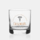 This custom medical school graduation whiskey glass gift features modern orange typography for a class of 2024 graduate. Customise with your graduating year under the caduceus for great personalised nurse or doctor keepsake.