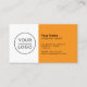 Easily personalise this modern and simple white professional business cards adding your company logo, photo or decorative image, your name, job, website, corporate slogan and any custom contact info. These minimal business card templates featuring a modern and minimal design that can be in minimalist and stylish orange and white, or in any colour. Quickly create your own professional and formal business design: upload logo and write contact info. Done! Or, if you have ten minute and would like to make a more complex design, you can design a cool and stylish business card that perfectly matches with your visual brand identity. Stand out from the crowd with your unique style and branding today! Click on customise further for change font and background colours in any colour, and also font style can be changed between thousand of styles: basic sans serif fonts, handwritten friendly and elegant script, grunge distressed typewriter, and more. Whether you decide to go with professional, contemporary, elegant, trendy, cute, girly, feminine, vintage, or modern styled business card designs is completely up to you! Please open the graphic design editor, you can discover on business card template a set of hidden element: borders, double background colours, repeating logo pattern background on the back (now hidden by a white background, just delete it with the design tool), social media networking icons (instagram, facebook, pinterest, twitter) and more, make design layers visible by clicking on the eye-shaped icon, resize and change position and colours of icons and elements.