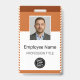 Custom Orange Modern Photo Employee Name Barcode ID Badge