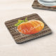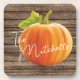 Custom Orange Pumpkin Green Leaves On Woodgrain Coaster