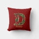 Custom Ornate Monogram D Christmas Red Gold Cushion