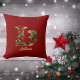 Custom Ornate Monogram L Christmas Red Gold Cushion
