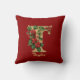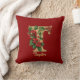 Custom Ornate Monogram T Christmas Red Gold Throw Cushion