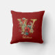 Custom Ornate Monogram W Christmas Red Gold Throw Cushion
