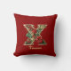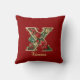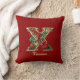 Custom Ornate Monogram X Christmas Red Gold Throw Cushion