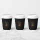 This custom paper cup showcases a sleek black design with a minimalist business logo and customisable text. Perfect for featuring your logo and personalising with your details, it's ideal for use at your business, in shops, during company events, and more