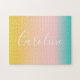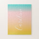 A soft pastel ombre gradient blending warm yellow, blush pink, and cool teal with elegant script lettering. This personalized design is perfect for kids, teens, and adults who love stylish, relaxing puzzles. Ideal as a thoughtful gift for birthdays, holidays, or self-care moments. A beautiful and calming activity for puzzle enthusiasts of all ages. Customize with a name for a unique and personal touch.