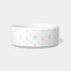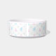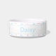 A sweet pattern featuring pink and blue puppies with mint green stars on a white background. Customise this bowl using the name of your pet!
