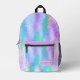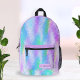 Unique personalised girly backpack with faux iridescent holographic design in pastel colours.