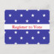 A blue field has white stars while the words "register to vote" appear in red letters on this patriotic red, white and blue post card. Use this register to vote postcard to support your voter registration drives and/or get out the vote (gotv) campaigns.