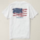 An image of the USA flag on the back and personal text. Personalised text on front. Just edit the details to yours and you have your own custom t-shirt. Kids and toddler sizes available.