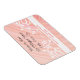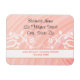 Promote your business with this customisable flexible magnet sporting your information in two separate locations. The magnet has a white filigree, floral and soft peach spiral design over an altered computer generated fractal background of pink and peach coloured spirals coming from both ends. The peach outlined white bar sets off your business information. Fill in the template fields with your information, remove any text or click customizeto select a font style, size and colour you prefer.