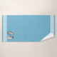 Three white stripes on blue teal and custom penguin couple image. Elegant modern towel set.