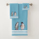 Custom Penguins & Three Stripes on Light Teal Bath Towel Set