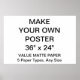 Custom printed personalised 36" x 24" HORIZONTAL VALUE MATTE PAPER POSTER Blank Template. Design, create, make your own. Your photo, image, text, logo, graphics in edge-to-edge full colour print. ARCHIVAL PAPER is 55 lb., 10.4 point thick, has a matte finish with a smooth surface, and is recommended for professional photography and graphic art. It is fade-resistant with 95+ years archival rating. Best for high quality, long lasting home and office decor, and for Christmas and birthday gifts.