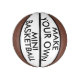 Custom printed personalised 6" MINI BASKETBALL Blank Template - 6" diameter; Weight: 0.5 lbs. Design, create, make your own. Edge-to-edge high quality crystal clear full-colour print on the 2 white panels - won't crack, fade, or peel. Ball is hand-stitched with care. Note: the high-gloss synthetic leather can make basketball a little more slippery than usual. ALSO AVAILABLE FULL SIZE! Best for memento of the game for a coach or team players, and great Christmas or birthday gifts for basketball fans.