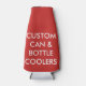 Custom printed personalised BOTTLE COOLER Blank Template with EXAMPLE OF RED BACKGROUND PRINT (change to any colour or clear) - 3"diameter, 7" high. Design, create, make your own. Your photo, image, text, logo, graphics in full colour edge-to-edge print on the entire area (all sides and bottom) of the foam cooler can cover. Fits any standard 12 oz. bottles. Collapsible high density open cell polyurethane foam for easy storage. Made in the USA. Great volume bulk multi purchase discounts.