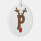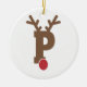 A custom personalised ornament featuring monogram letter "P" and our favourite reindeer...antlers, red nose, and all! Christmas tree ready!