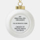 Custom Personalised CLASSIC CHRISTMAS TREE CERAMIC BALL PHOTO ORNAMENT. Gold hanger and hanging string. Your image and text printed in full colour on a 1.625" aluminium insert on the flattened front of the ball.