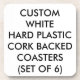 Custom printed personalised HARD PLASTIC CORK BACKED COASTERS (SET OF 6) Blank Template - 3.8" x 3.8". Design, create, make your own. High gloss plastic with non-skid cork backing. Easy wipe-clean surface.