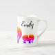 Custom personalised bone china coffee or tea mug with colourful elephant design and name.