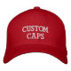 Custom embroidered personalised RED BASIC FLEXFIT BASEBALL CAP Blank Template. Design, create, make your own. 3 designable areas - customise embroider your logo, image, text on the front and side design areas of the cap. Comfortable fit high quality baseball cap in two stretchable sizes, featuring a Permacurv® visor, silver underbill, fused hard buckram 8.89 cm crown, 6 sewn eyelets for breathability and taped seams. Caps available in 12 colour options.