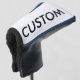 Custom printed personalised PUTTER GOLF CLUB HEAD COVER with BLUE piping Blank Template - 6" long x 5" wide x 3" thick. Design, create, make your own. Made of polyester, cotton, and marine vinyl, easily fits most standard drivers, magnetic closure for quick fitting, comes in 15 piping colours, made in the USA!